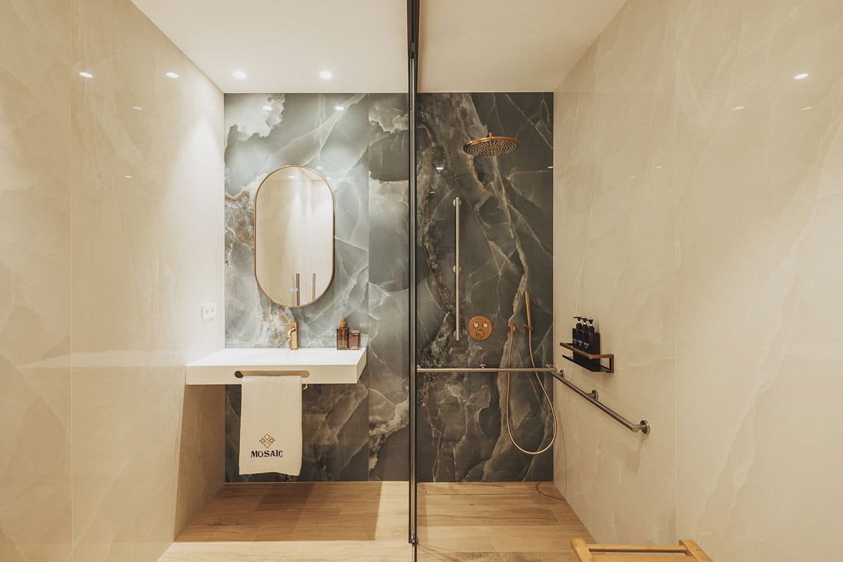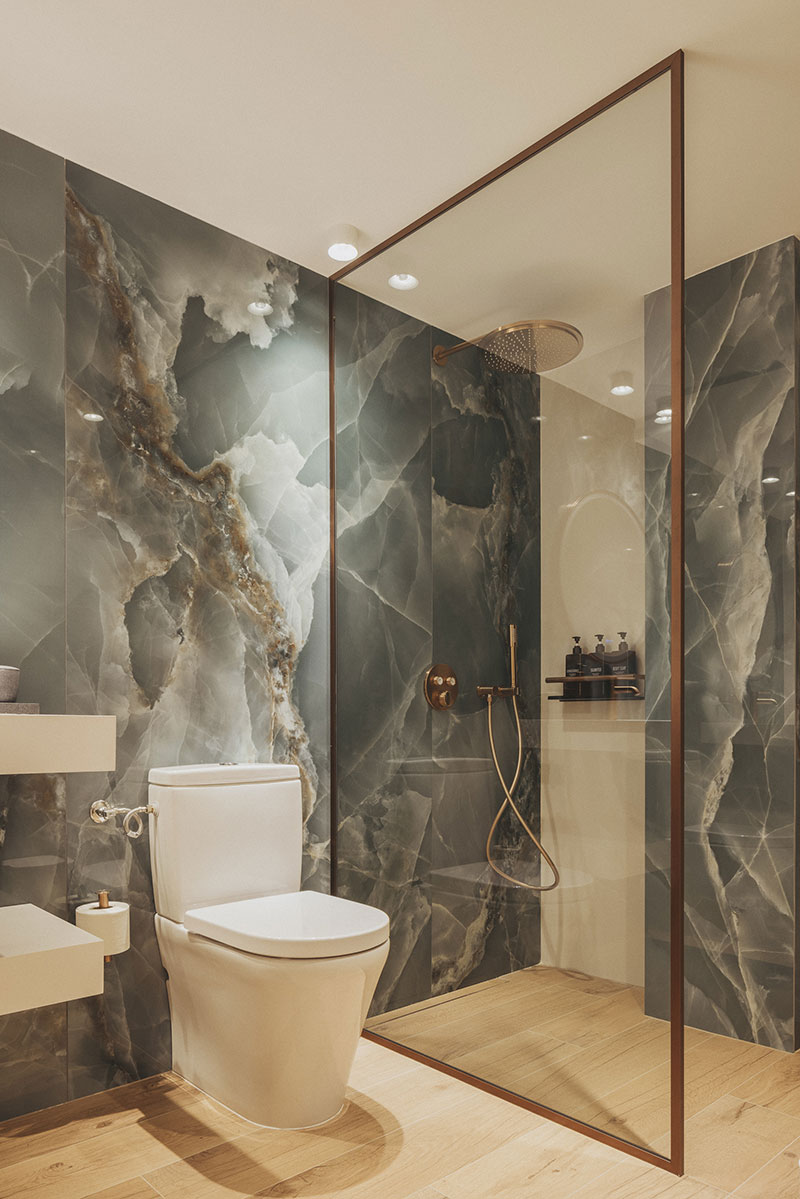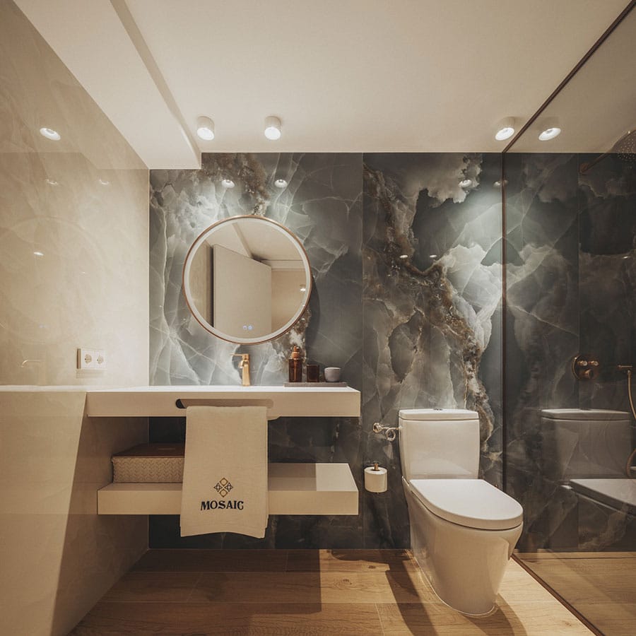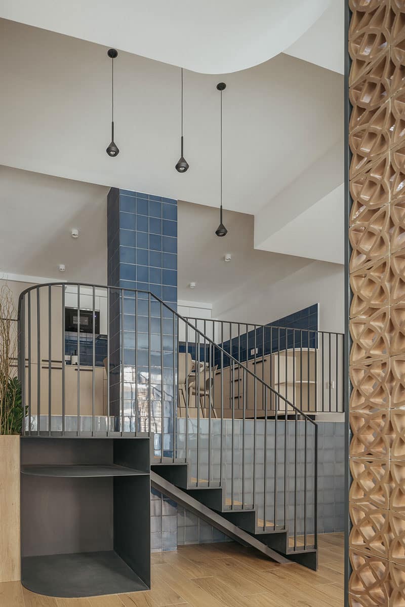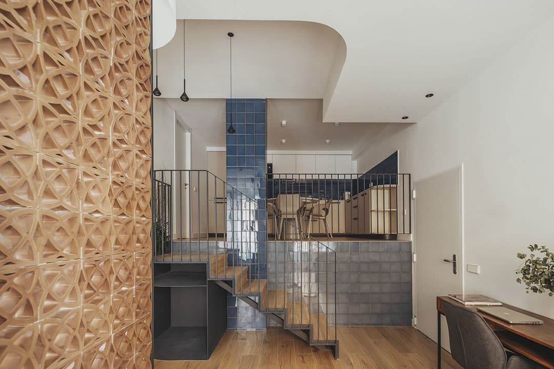 El diseño incorpora materiales tradicionales como cerámica y celosías, y colabora con artistas y creativos locales para construir una identidad visual coherente y profundamente arraigada en el lugar. También se han cuidado los recorridos y transiciones entre lo público y lo privado, desde el acceso en calle hasta el descanso en el dormitorio, con filtros visuales que amplían la percepción espacial y conectan estancias mediante mobiliario, transparencias y distintas alturas.