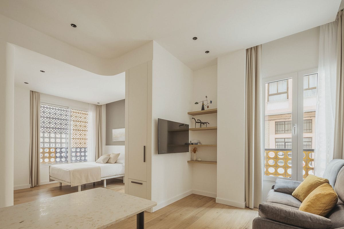 Ubicado en planta baja y a escasos metros del Puerto de Valencia, este proyecto parte de la transformación de un antiguo local comercial en dos apartamentos turísticos que combinan diseño, identidad local y sensibilidad urbana.